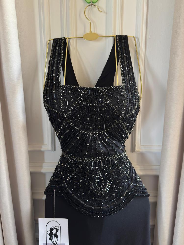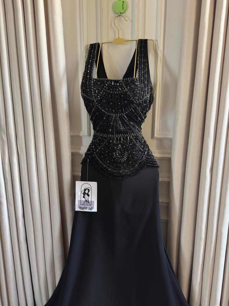 فستان سهرة أسود طويل مطرز بالخرز - تصميم ضيق وراقٍ للمناسبات الكبرى"