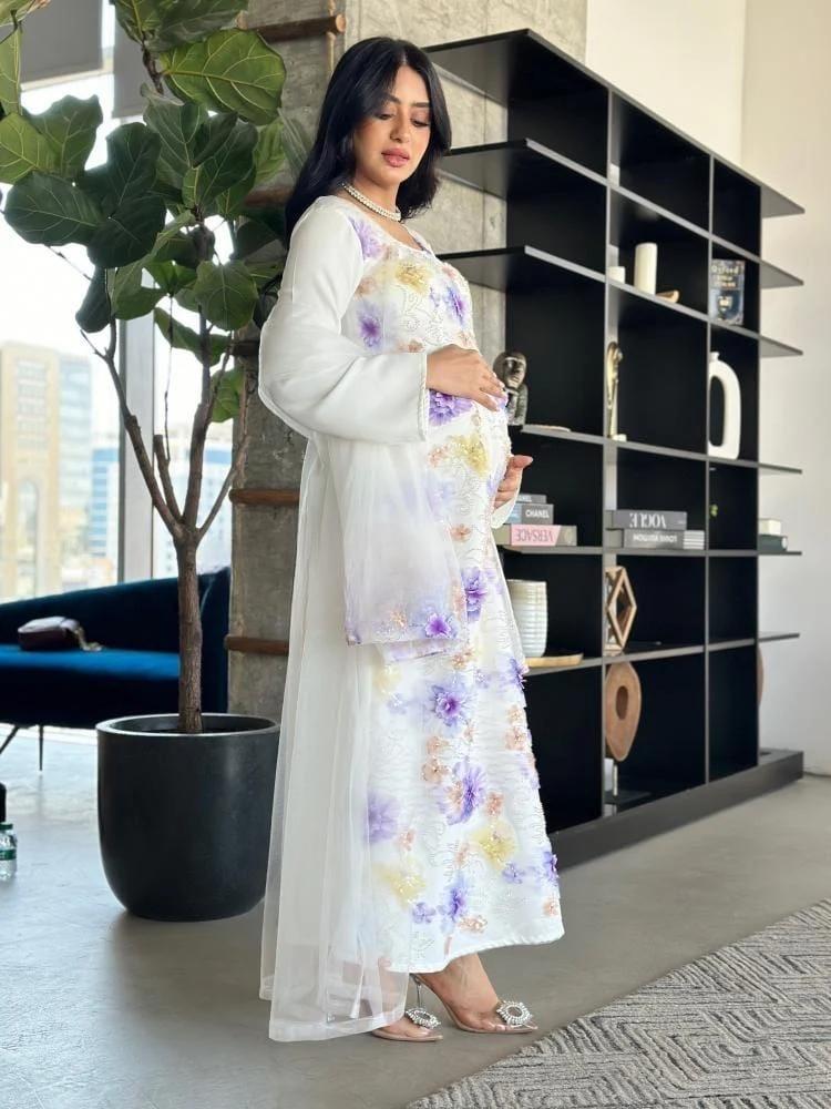 فستان حوامل الخامه : باربي مع طرحه تُل طبقه سهره خرز