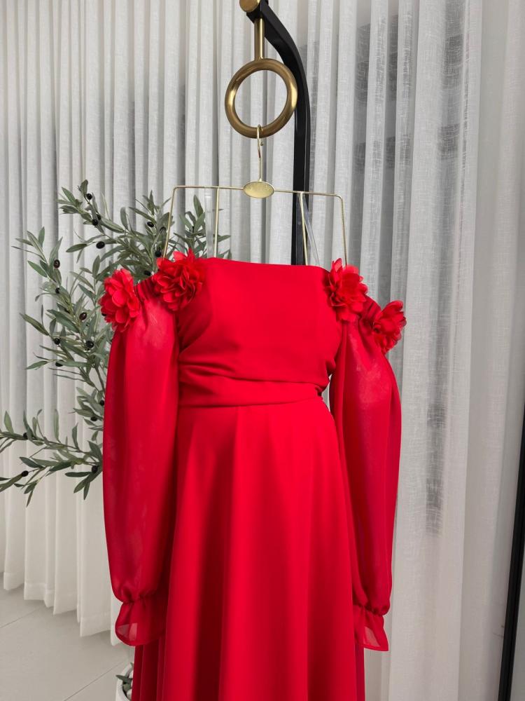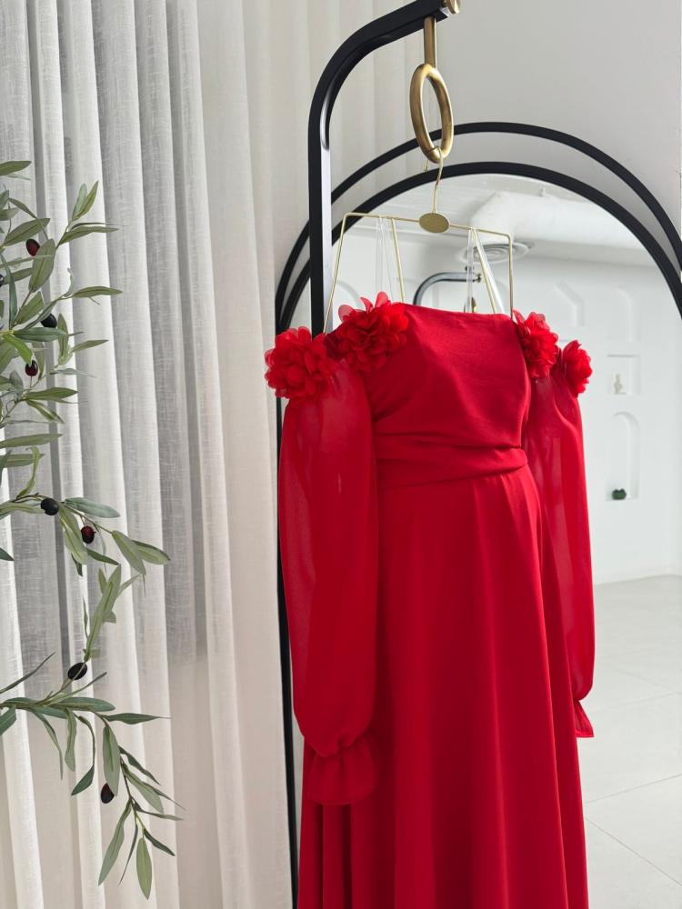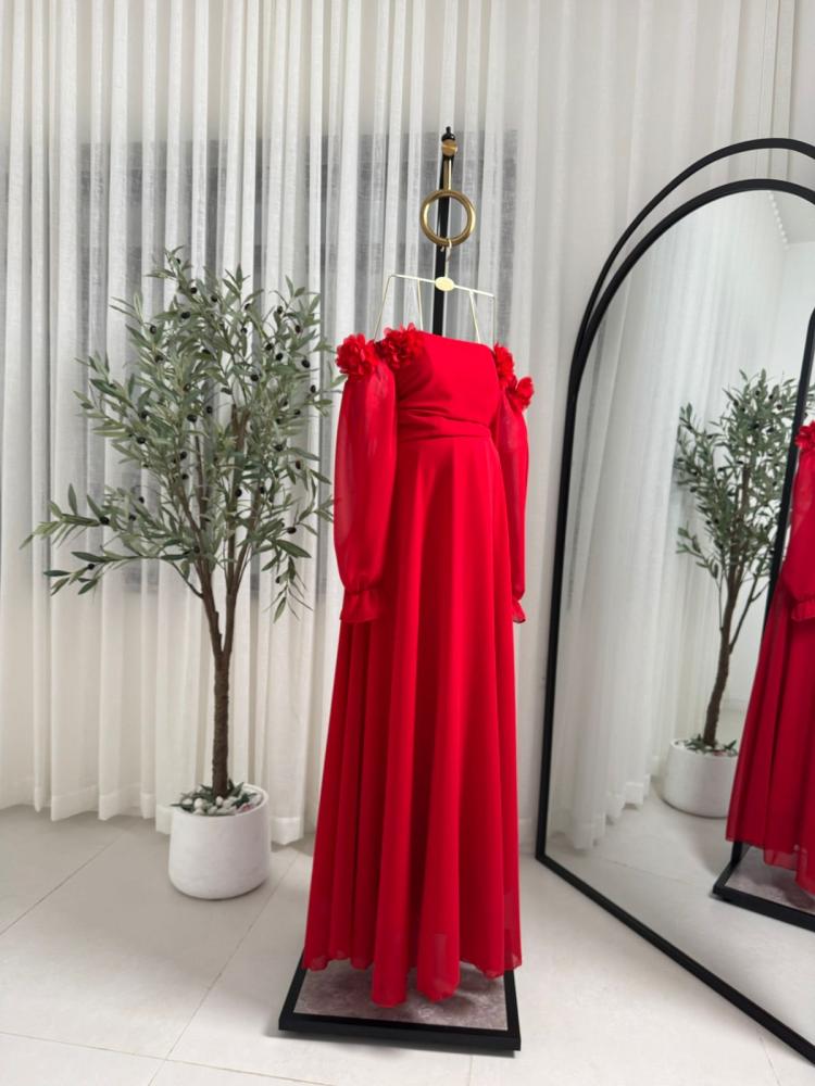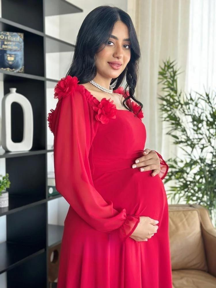 فستان حوامل الخامه شيفون مبطن تطريز ورد ليزر