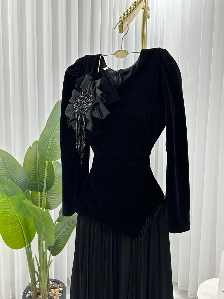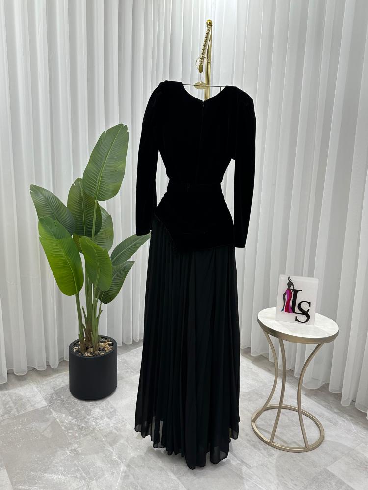فستان سهره أنيق/مخمل جوخ +شيفون بليسيه