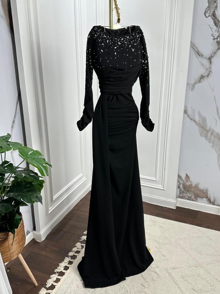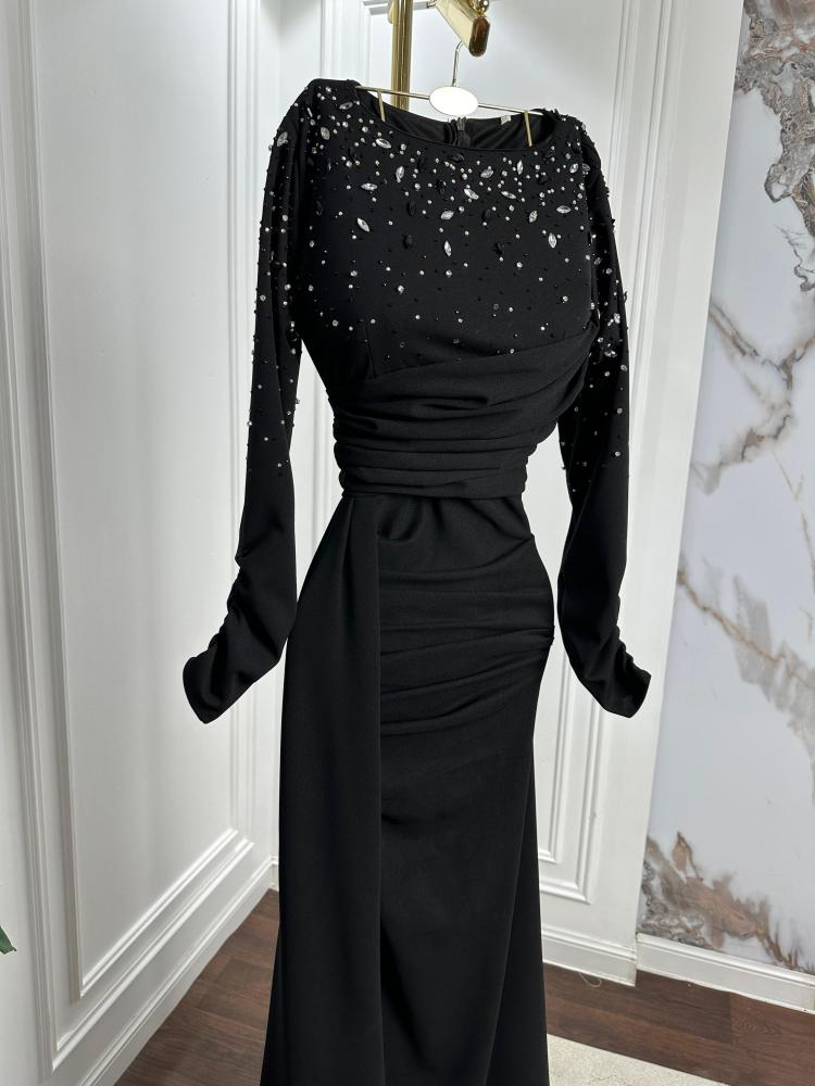 فستان سهره انيق راقي/كريب+تطريز على الصدر