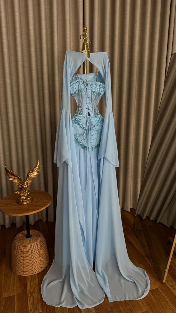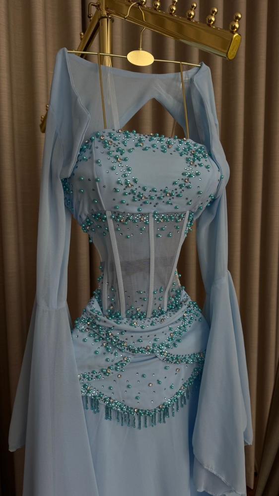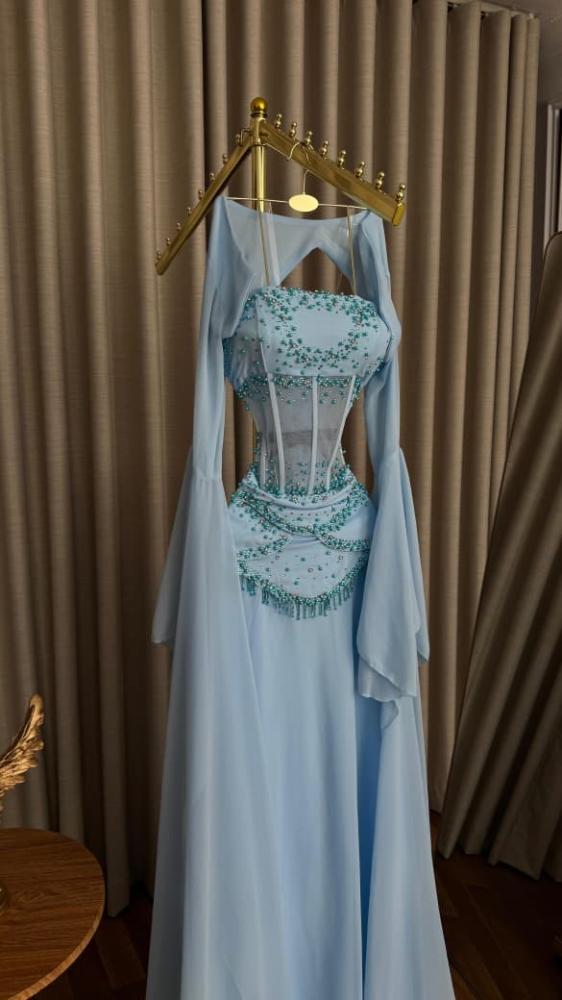 فستان سهره : جورجيت كلوش + تطريز يدوي هدب + بطانه ناعم