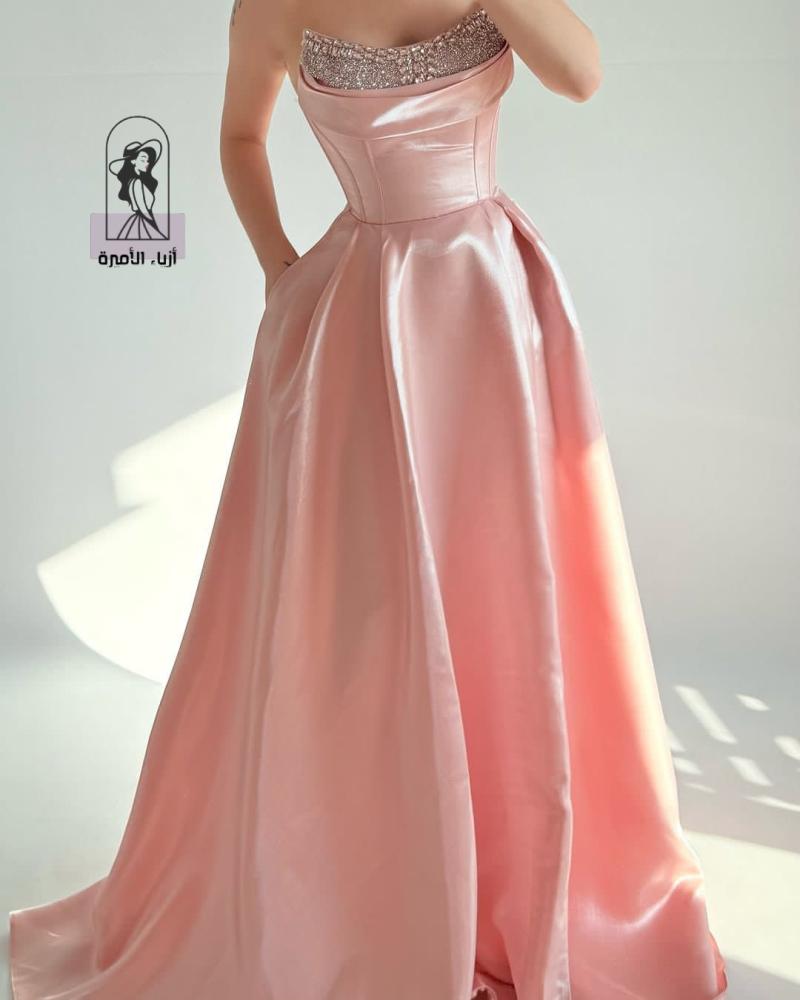 فستان كايرا كولكشن سهره ميكادو لمعه تطريز يدوي راقي لون زهري
