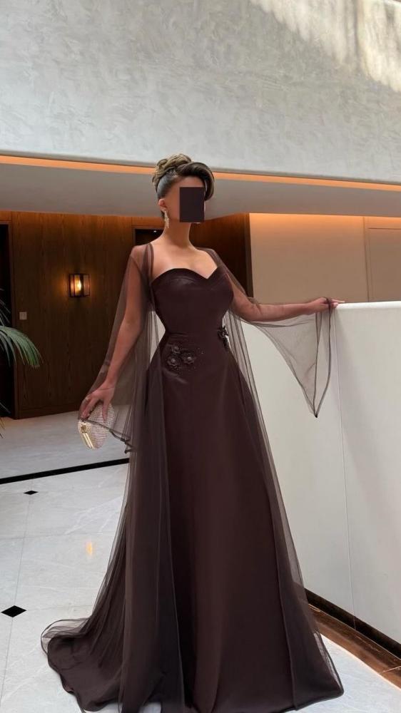 فستان لبنه : ميكادو . بشال تل وورود ليزر