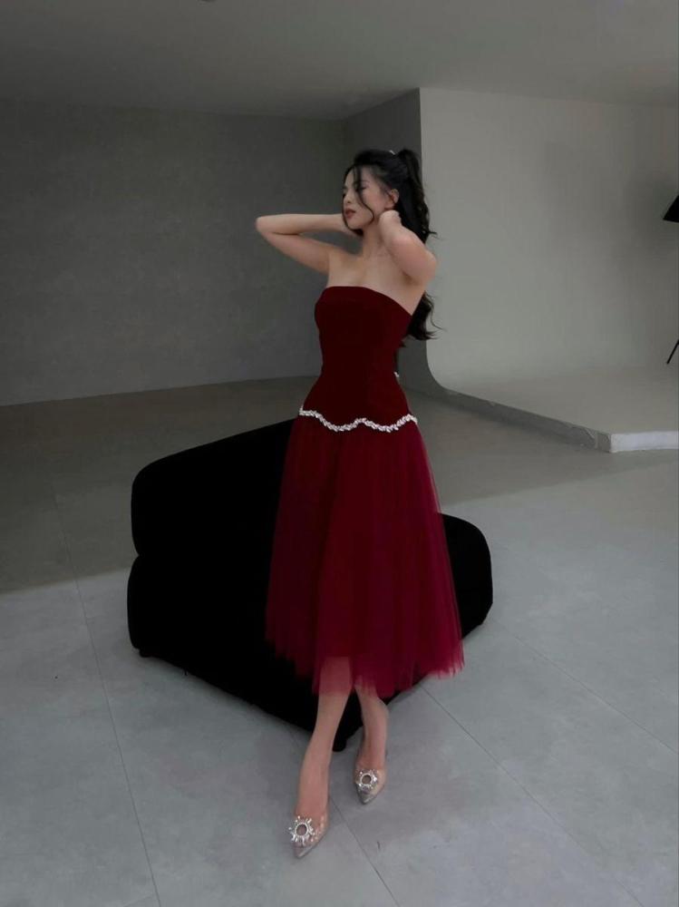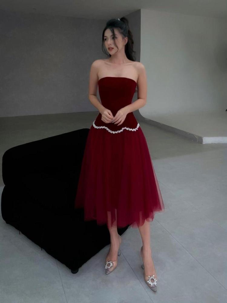 فستان ناعم مطرز مخمل جوخ تل ناعم