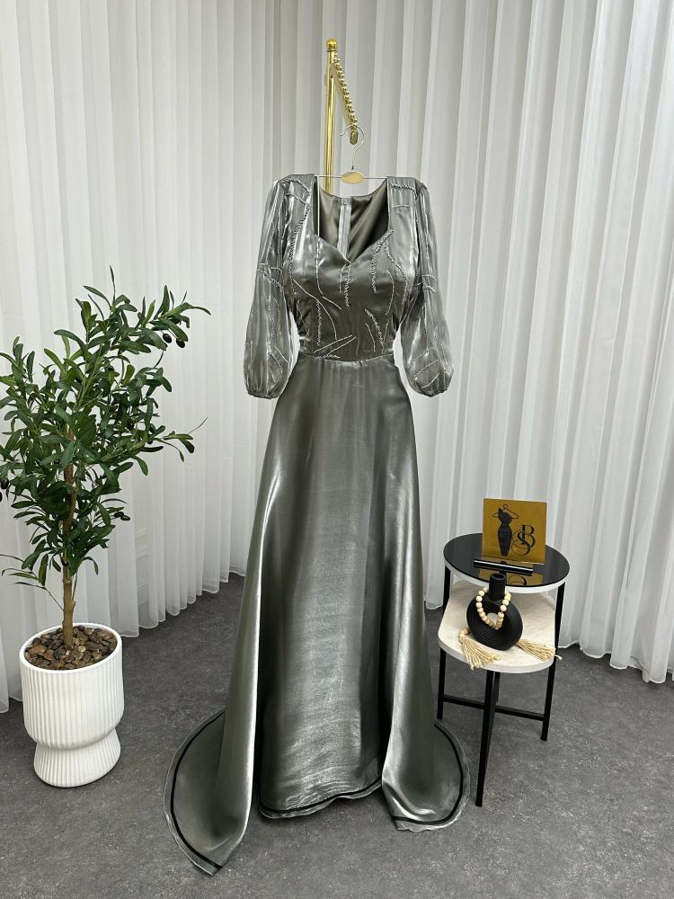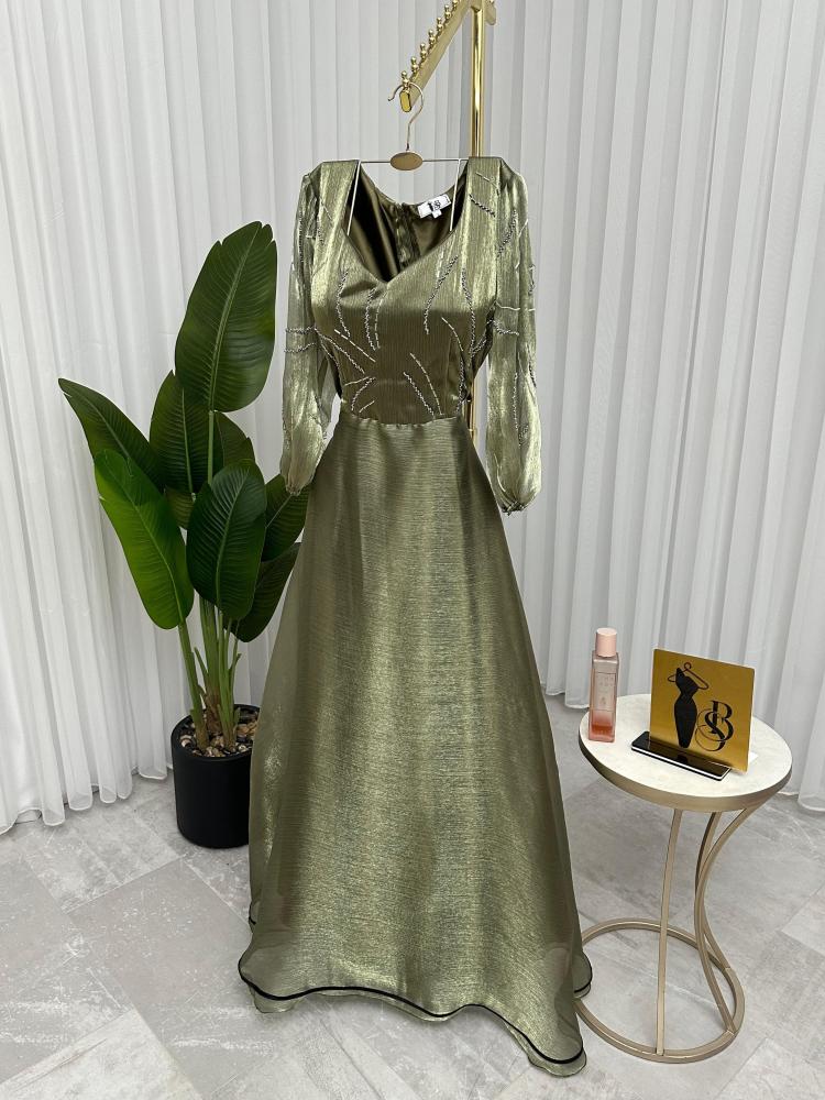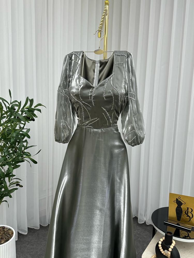 لونين.. زيتي + رصاصي الخامه.. اورجنزا لمعه + تطريز يدوي راقي على القماش