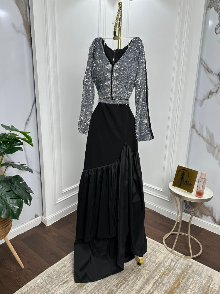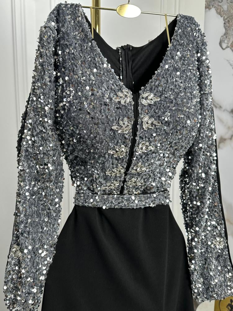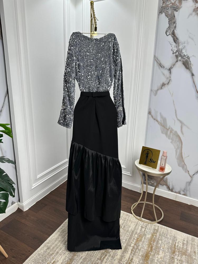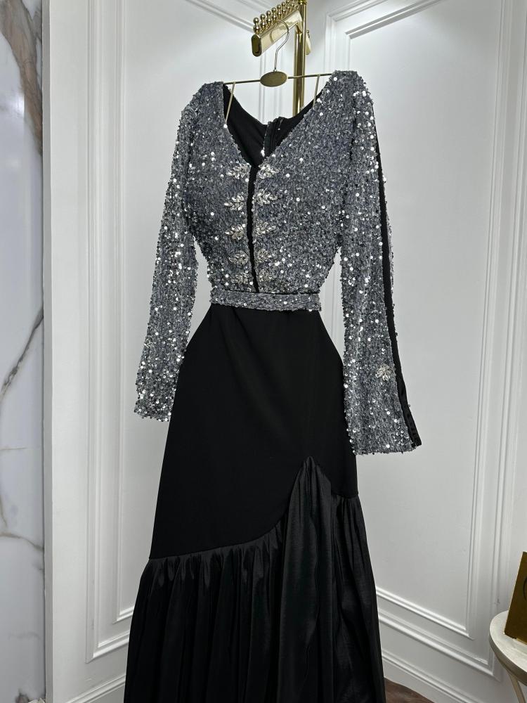 فستان سهره الخامه كريب شانطون +ترتر مطرز فصوص زركون