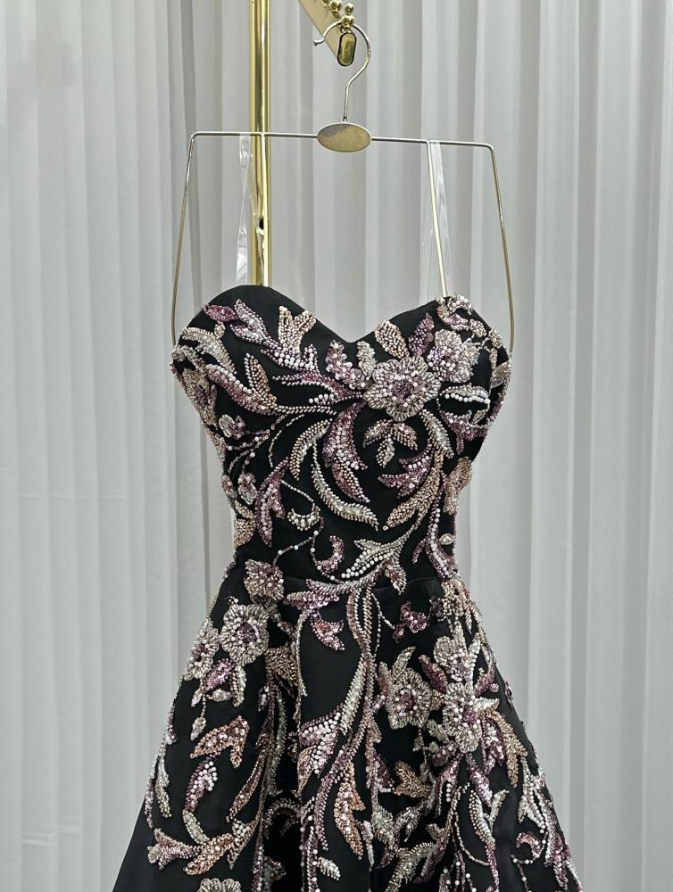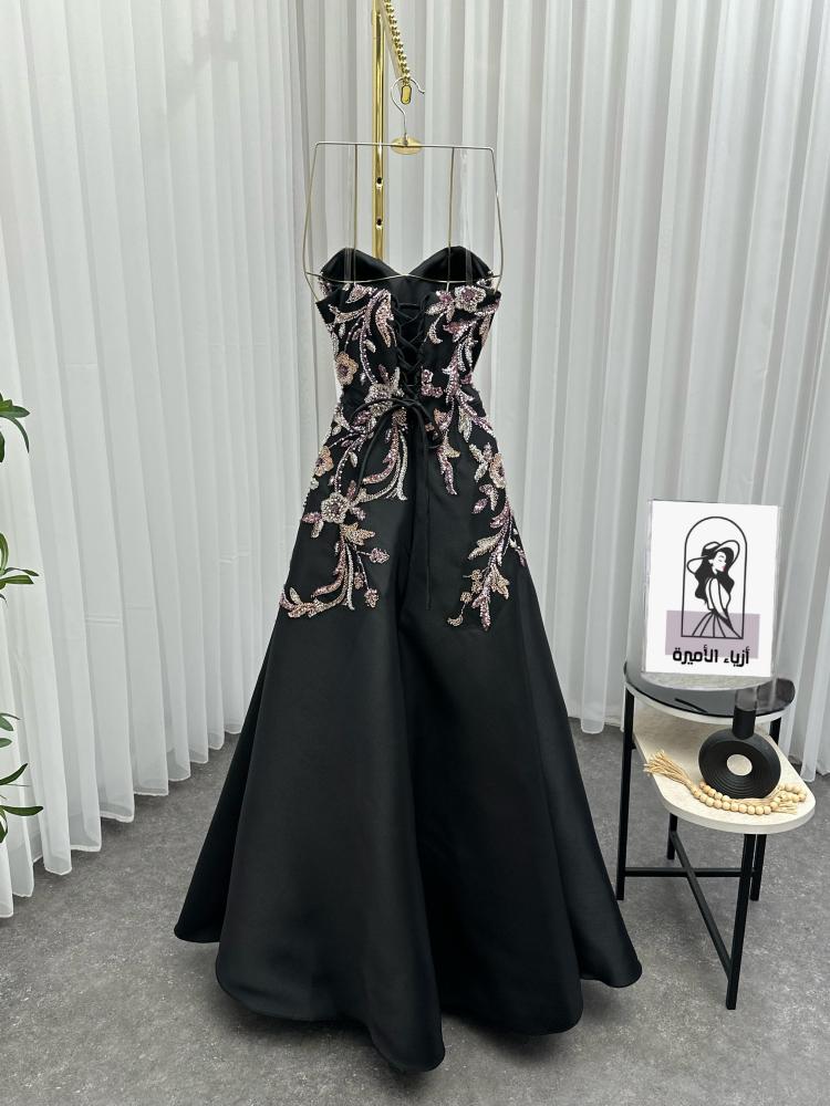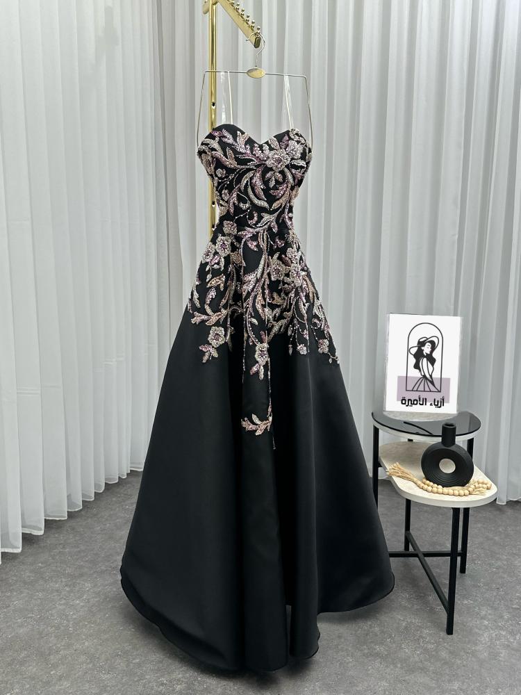 فستان علياء سهره فخم يتميز باللون الأسود تطريز راقي +ميكادو