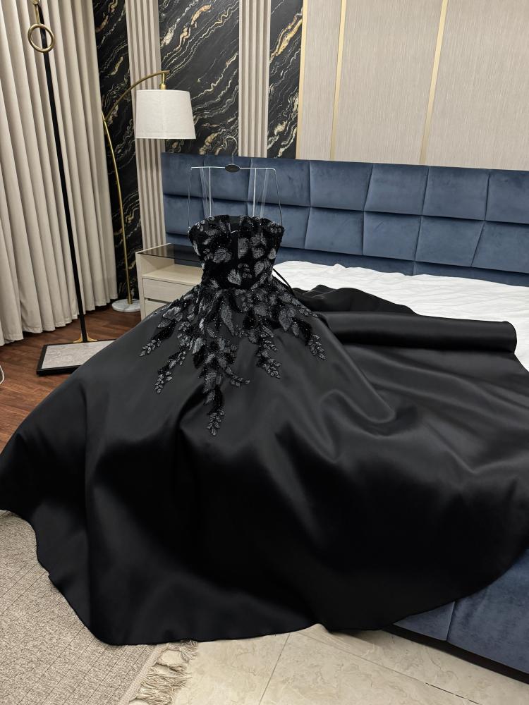 فستان السهره الخامه:ميكادو مطرز خرز مع تدخيلة قطيفة