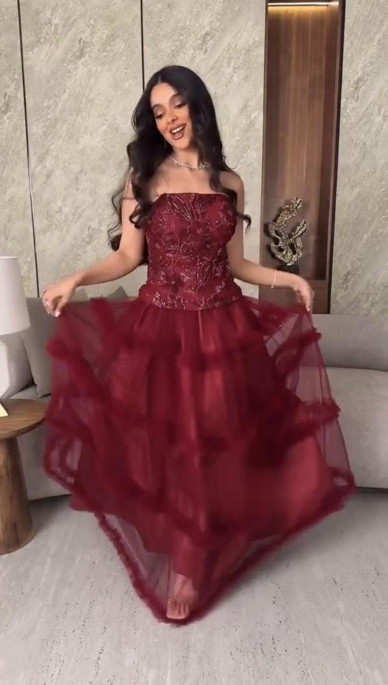 فستان سهره الخامه : تفته بكلفه ورد مع تل